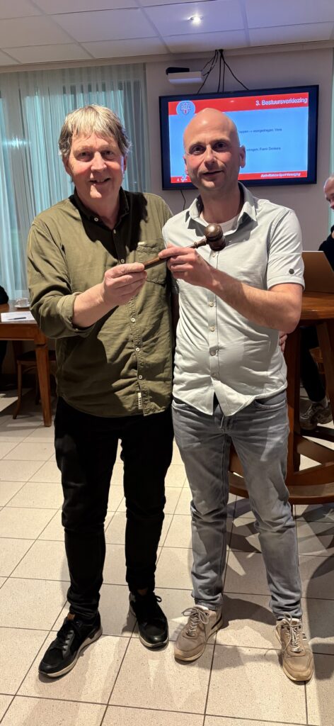 Frank neemt hiermee de voorzittershamer over van Hans en Vera neemt het penningmeesterschap over van Marianne.