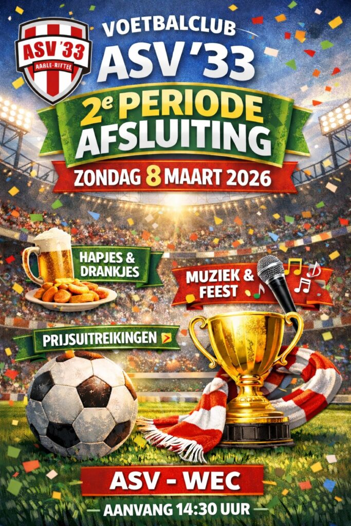 Zondag 8 maart wordt de tweede periode van dit seizoen bij ASV feestelijk afgesloten.