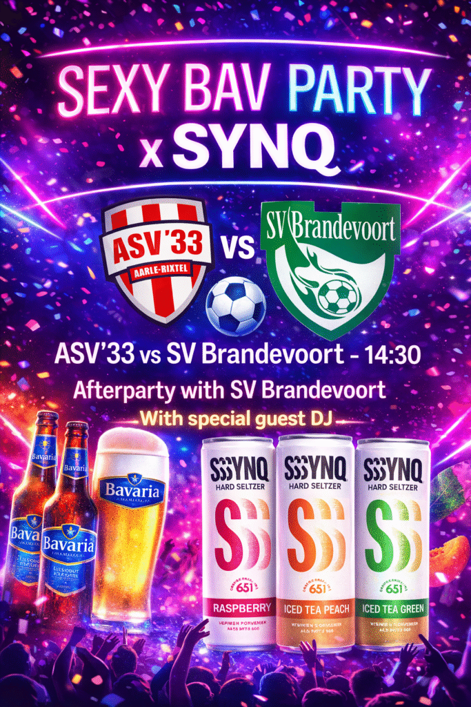 Zondag 19 april – ASV’33 – Brandevoort – Aansluitend SEXYBAV PARTY x SYNQ